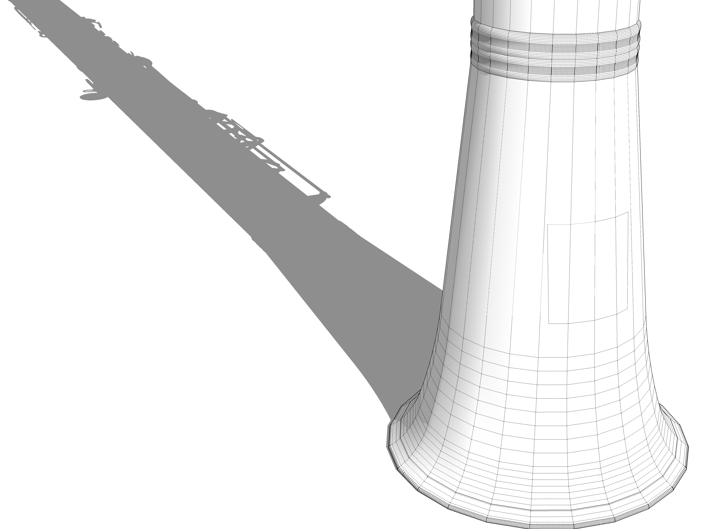 To prevent the material from repeating across the bell, I first projected a rectangle the same size as the label onto the bell. This divided the surface into two regions. Then the material is applied to the inner region.