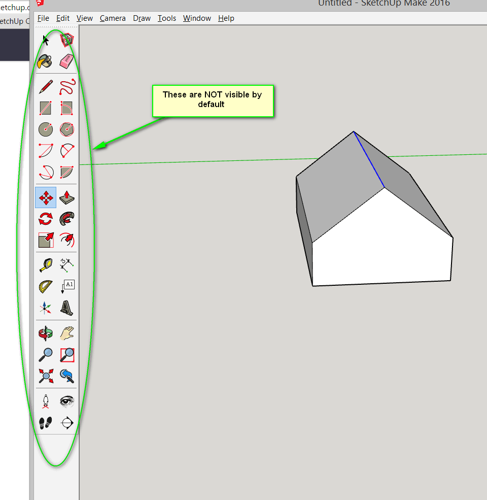 PS Ah - finally we are told how to open the complete tool set at 3:30 into “Getting Started with SketchUp - Part 2” - a bit late, no?