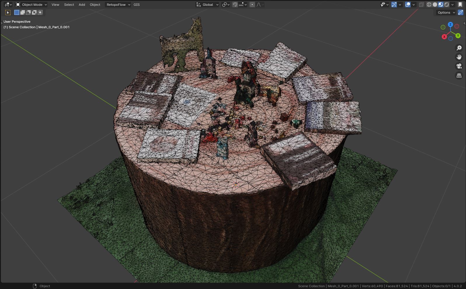 Transform a high-resolution photogrammetry terrain and stone ruins model scan into a low-poly, editable model. A simple and quick method on how to cleanup, repair holes, retopologize a complex model and bake the model and paint textures to transfer high-res info from the photogrammetry model to the low-poly one using Blender.