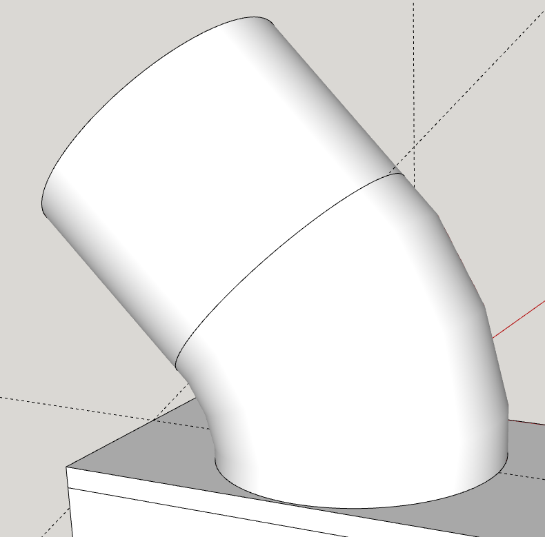 For the screenshots of the final thing in both cases I used a 96-sided circle and 45° bend but if you need some other angle, just use a number that is a multiple of 360° divided by the angle.