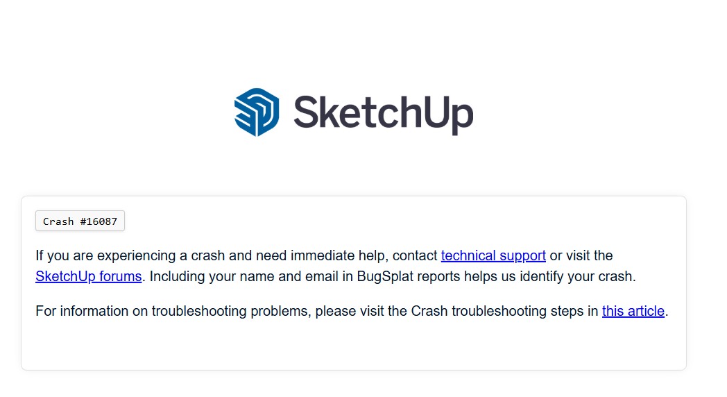 The last time I restarted the following error message come up: “A breakpoint has been reached (0x0000003 occurred) in the application (SketchUp) location 0x00007FFCC9E3AA47.”