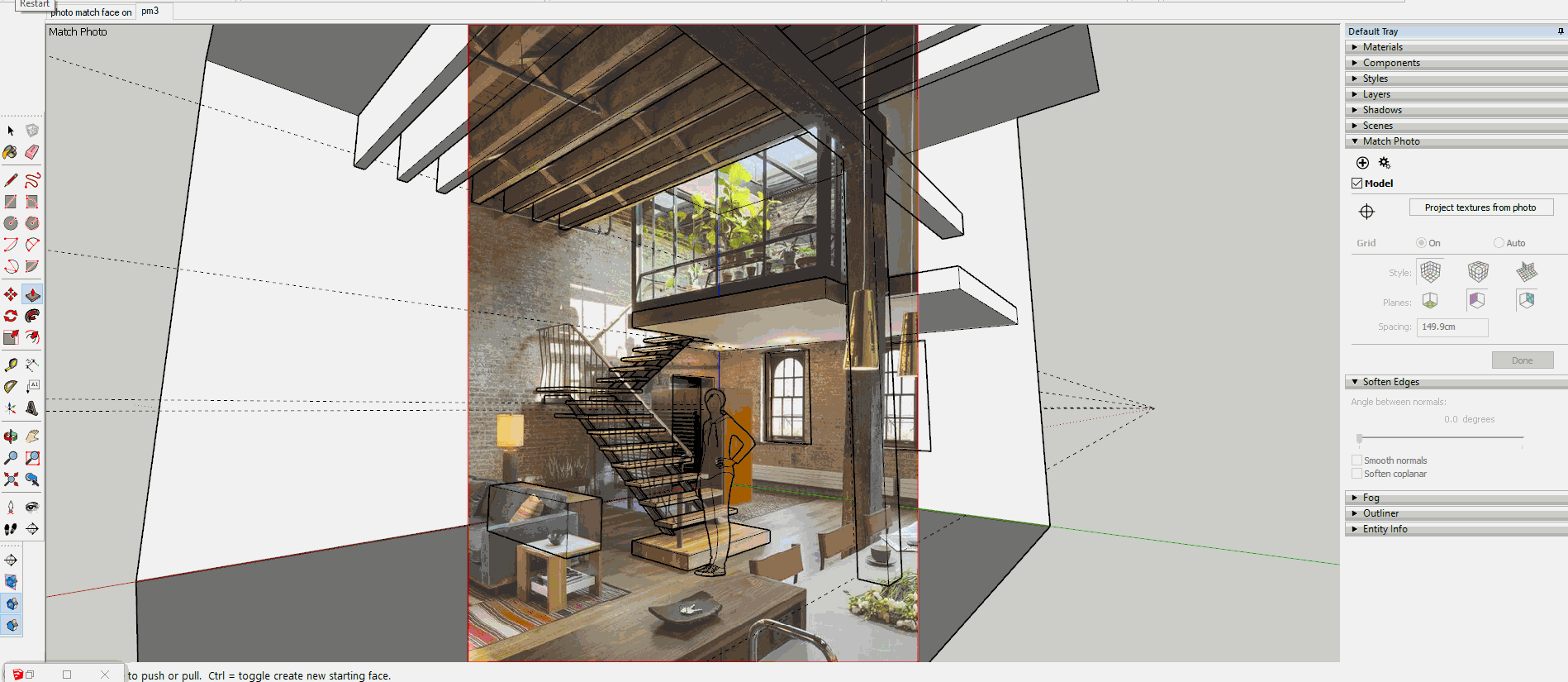 While it is still a harder make when the lines are not diverging. In this particular instance, if you look at the pinterest post, it does show some other views of the space, so by using multiple photomatch tabs you could get it more accurate.