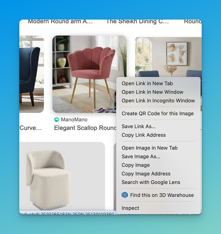 This little experimental extension helps you instantly find 3D models in the 3D Warehouse based on any image you see online. Imagine you’re browsing for design inspiration, spot a perfect chair, and with just two clicks, you can find that chair (or similar ones) as a downloadable 3D model in the 3D Warehouse. This tool makes finding exactly what you need quicker and more intuitive than ever before.