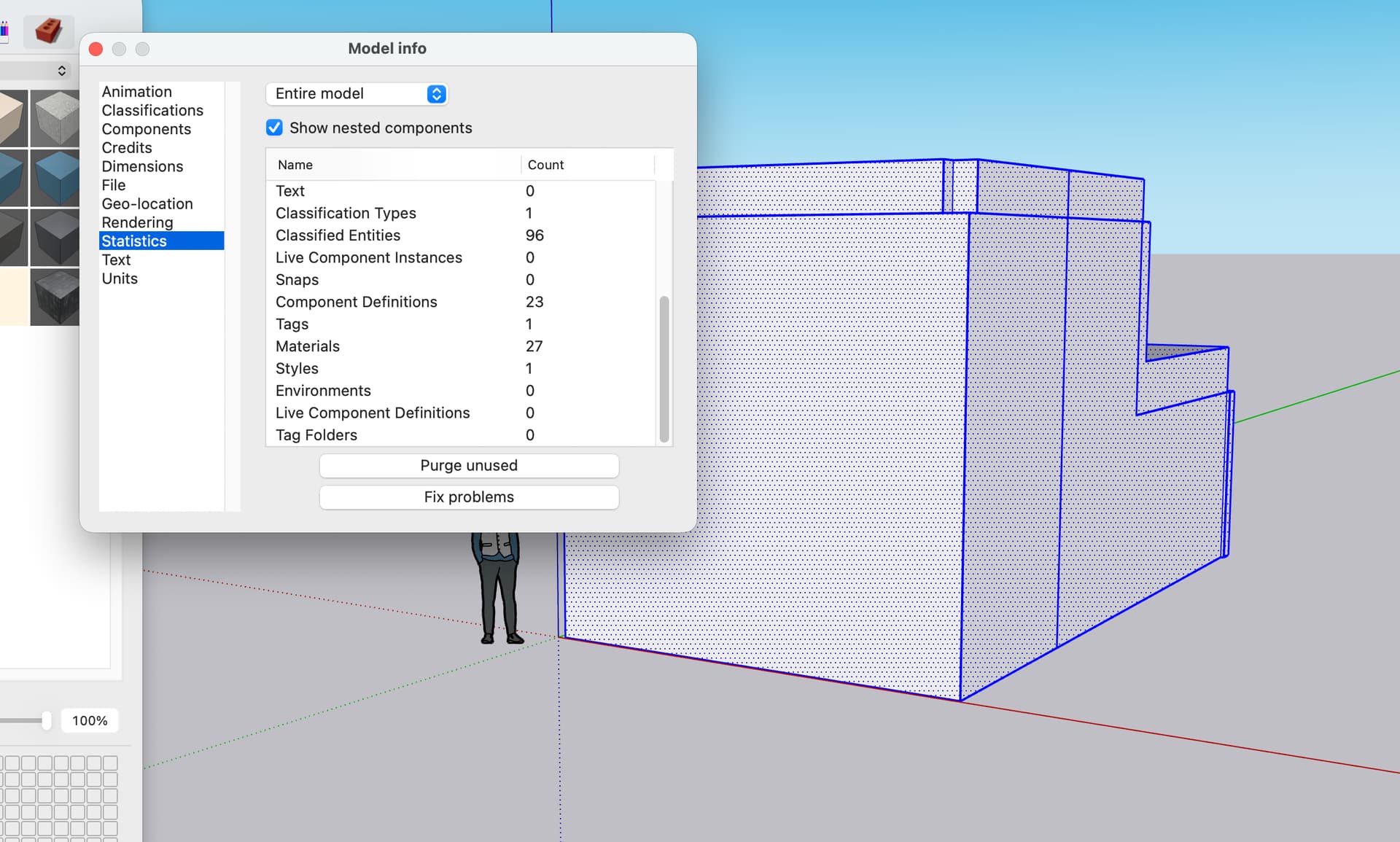 second idea, go to window / model info / statistics. tick the develop thing at the top (bottom?)