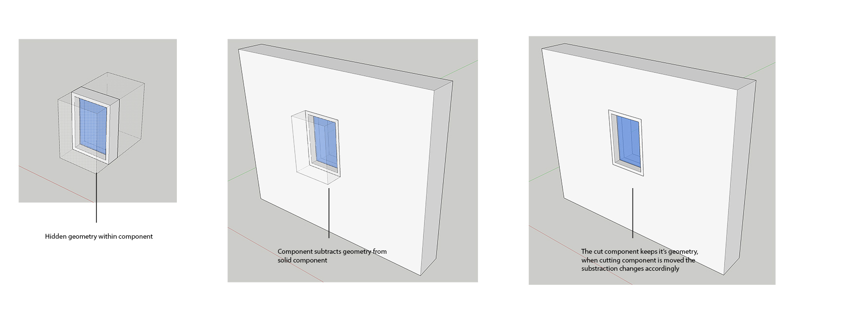We really need a way to ‘cut’ out everything in a specified area. Currently a ‘cutting’ component can cut one face. I would like to see a way to cut lines and faces that are not on the same plane as the component.