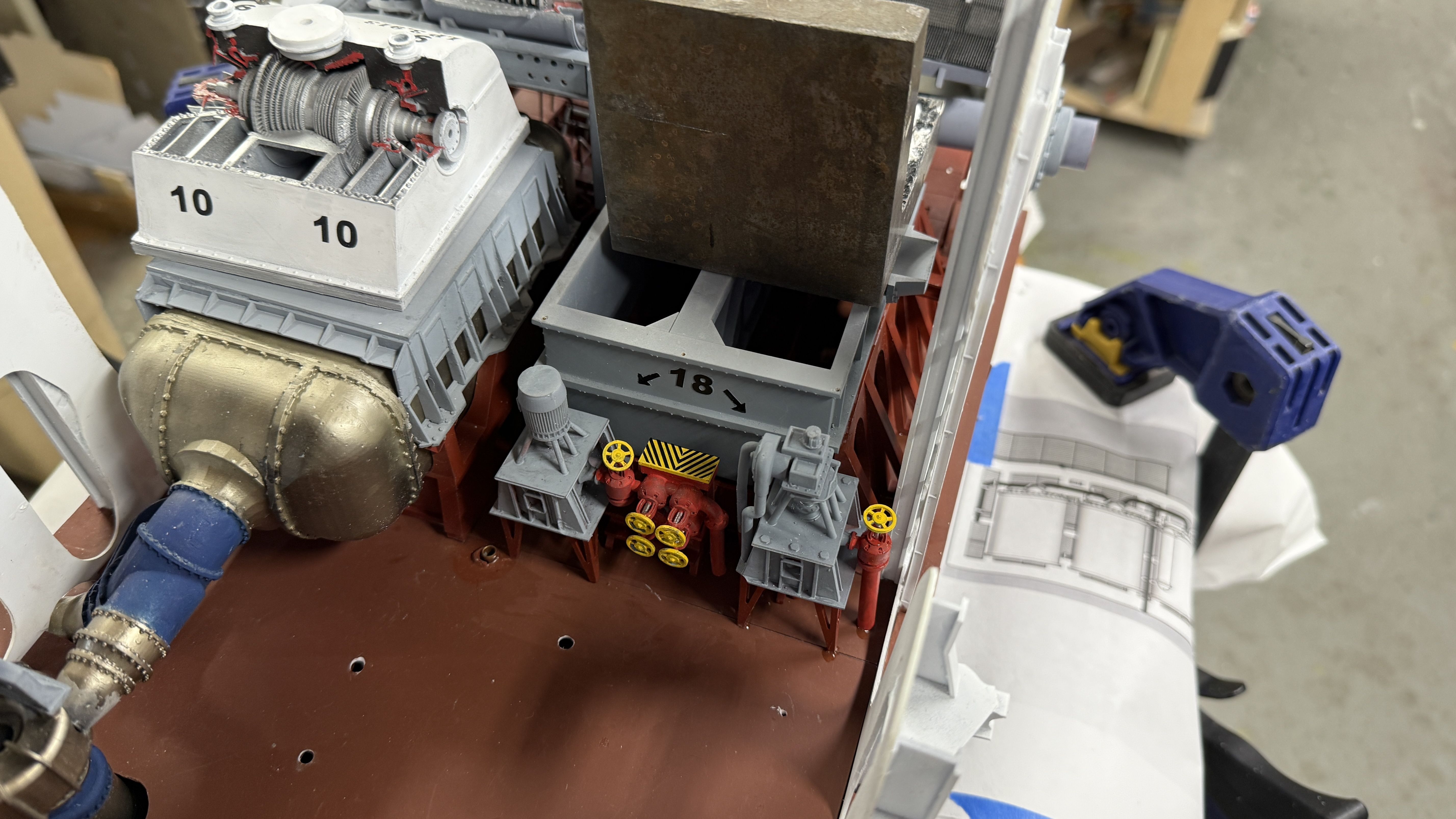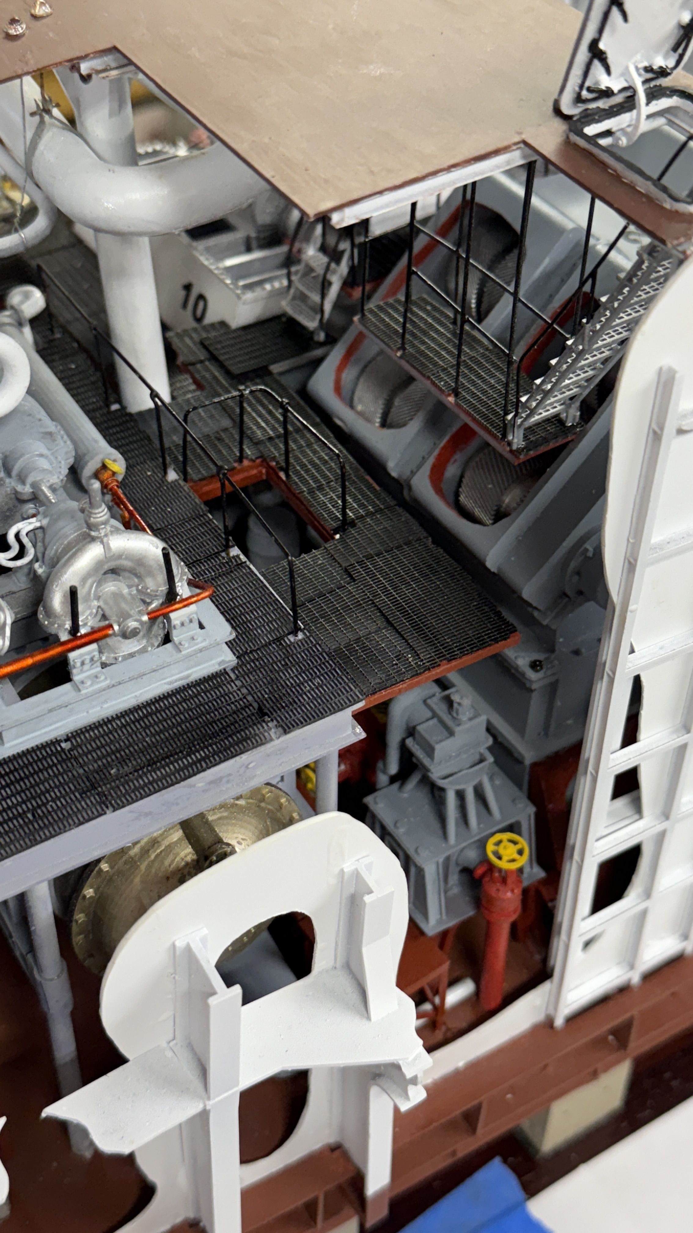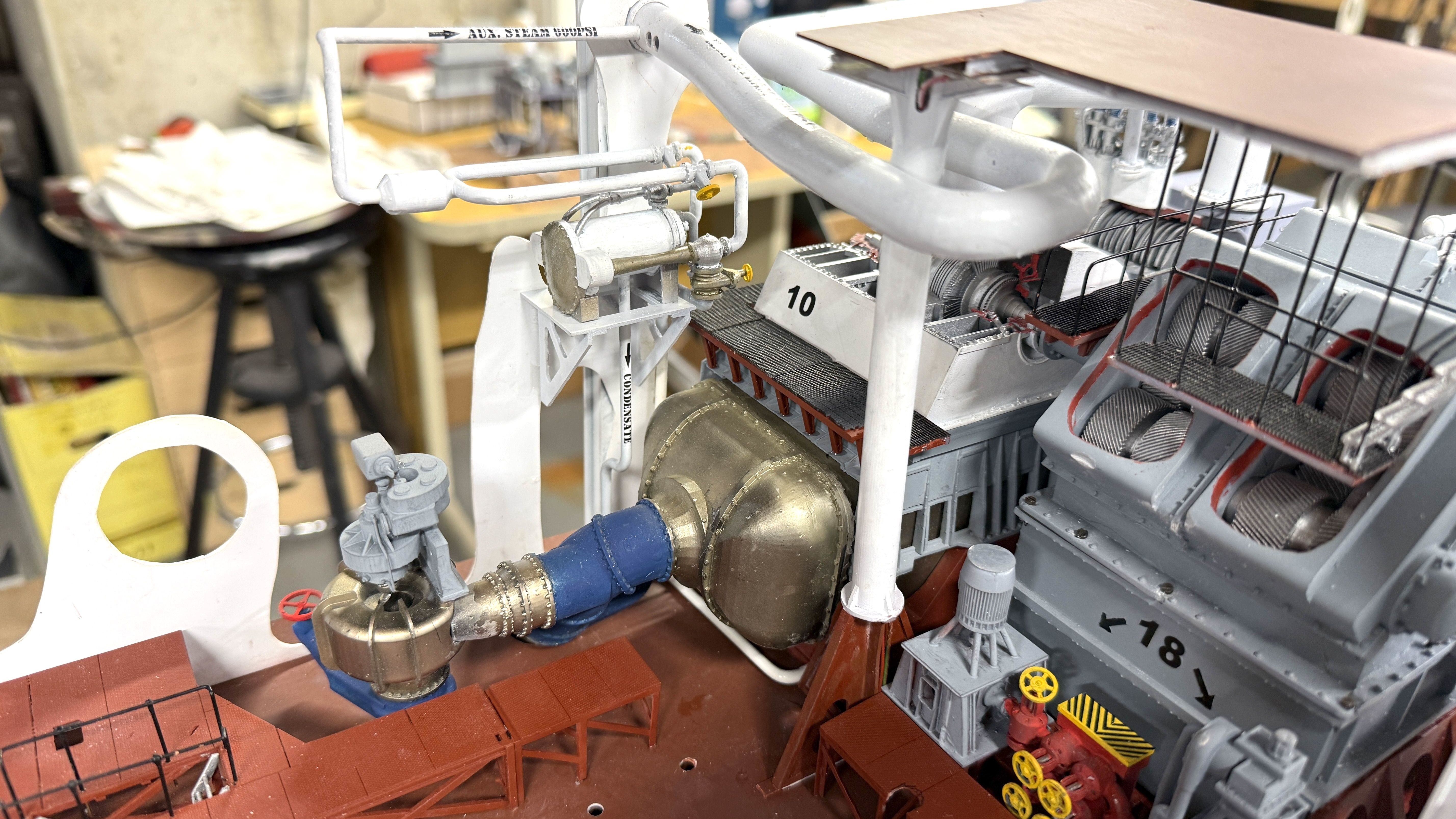 I had to trim the lenght of the big lube oil filter’s piping since it was restricting my ability to move the TG unit fore and aft for final positioning. Their length was just an approximation anyway. I don’t really know where the pipes go on the ship. They’re under the floor plates.