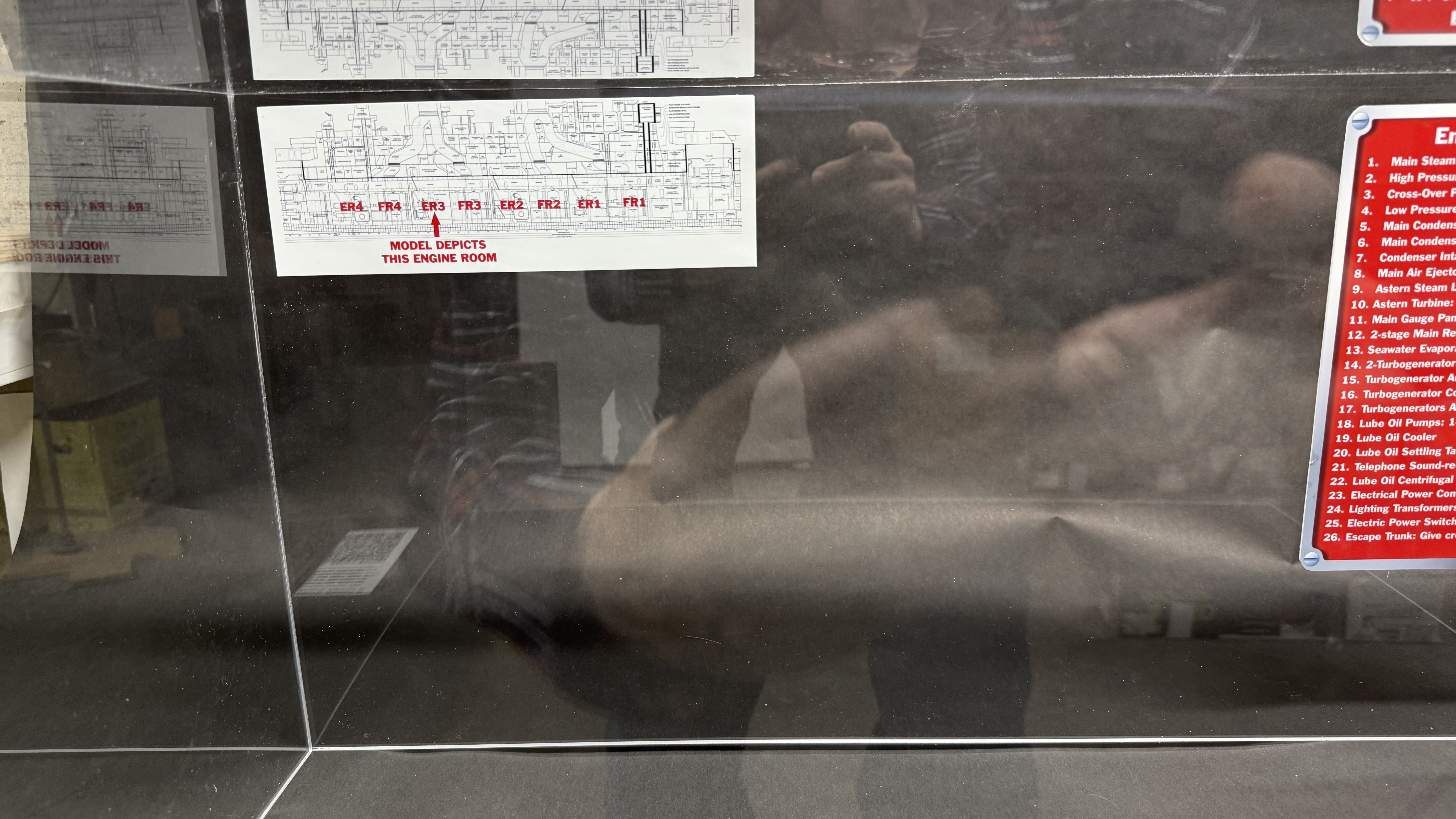 I printed duplicates and adhered them back-to-back. I then attached it to the case with the 3M Transfer Tape as I did with the Item Key. The actual graphic is about 6" wide and a couple deep. It’s not going to block viewing anything important. It’s quite dramatic about how much of this ship’s interior is taken up by propulsion. That’s about 300’ feet of engines and boilers. Interestingly, the drawing has the layout of ER 3 incorrect. That doesn’t matter since the correct one is sitting right in front of their eyes.